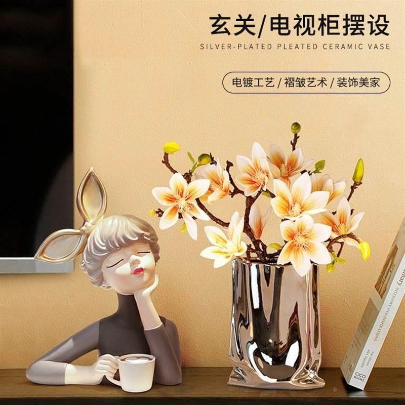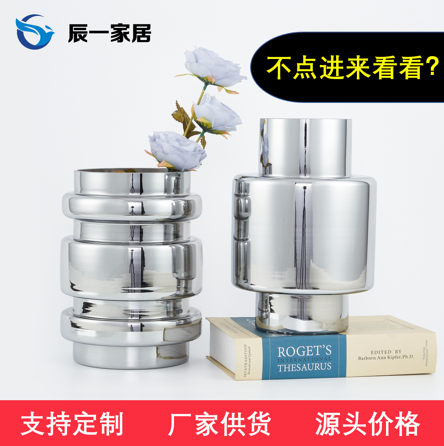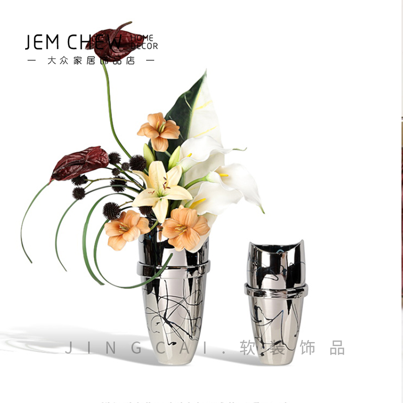 轻奢极简现代花瓶花艺银色花器插花干花鲜花样板间售楼处酒店软装
