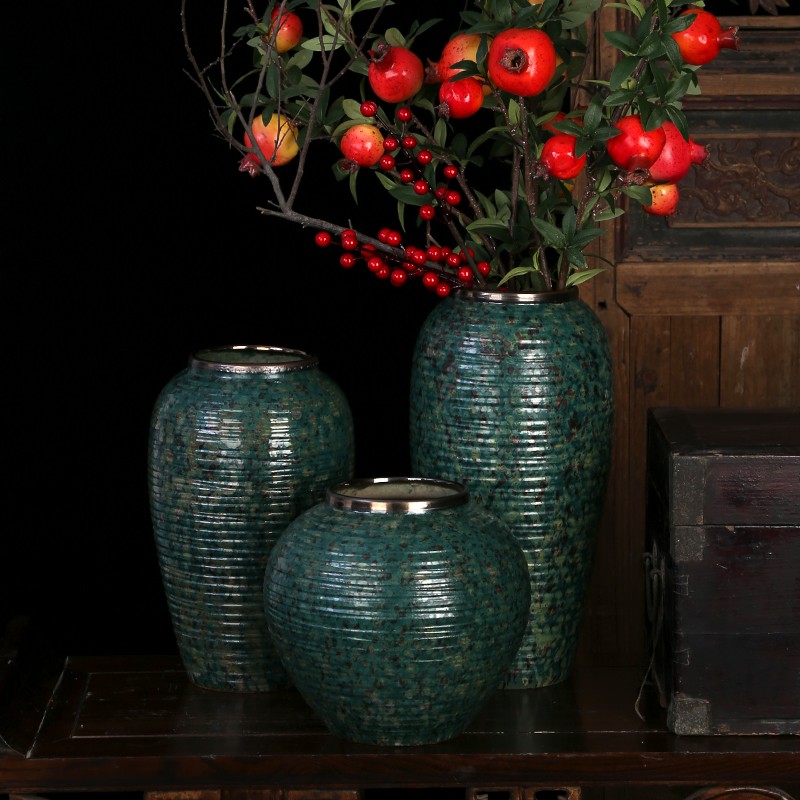 景德镇陶瓷三件套 复古绿美式简约现代花瓶插花干花水培花盆摆件