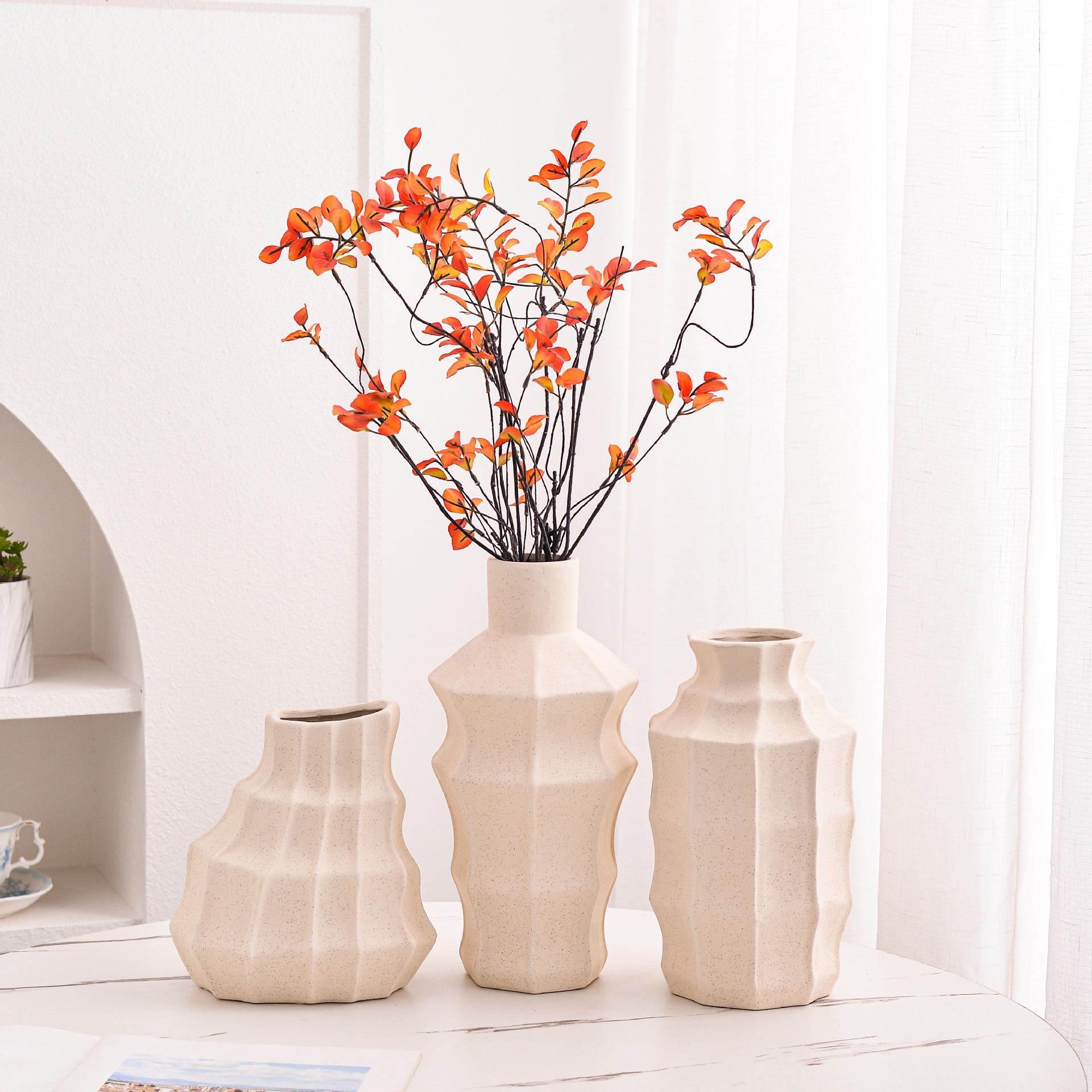 现代花瓶三件套客厅插花陶瓷套装花器家居摆件磨砂哑光百川样板室