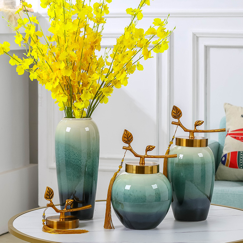 轻奢简约现代花瓶摆件客厅家居摆件茶几餐桌琉璃干花器北欧装饰品