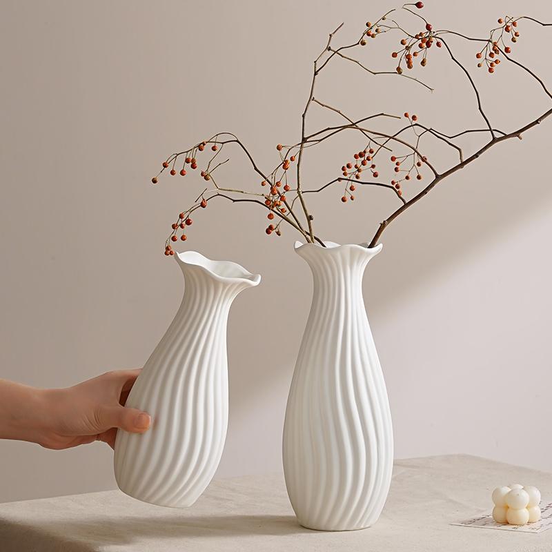 简约现代花瓶小众陶瓷白色高级感客厅水养插花鲜花郁金香装饰摆件