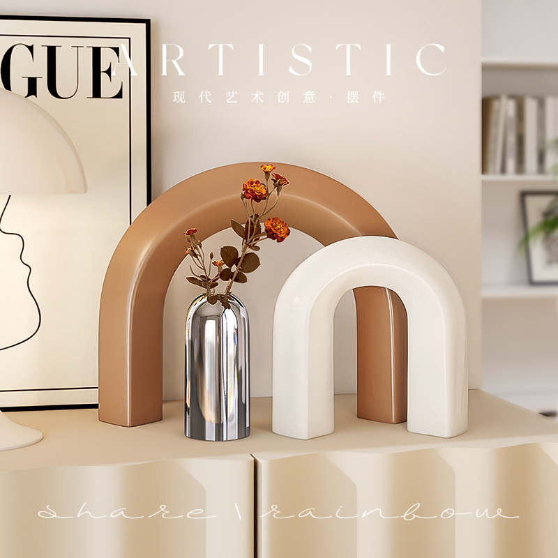 2025新品简约现代花瓶摆件样板房软装家居饰品客厅创意工艺品花器