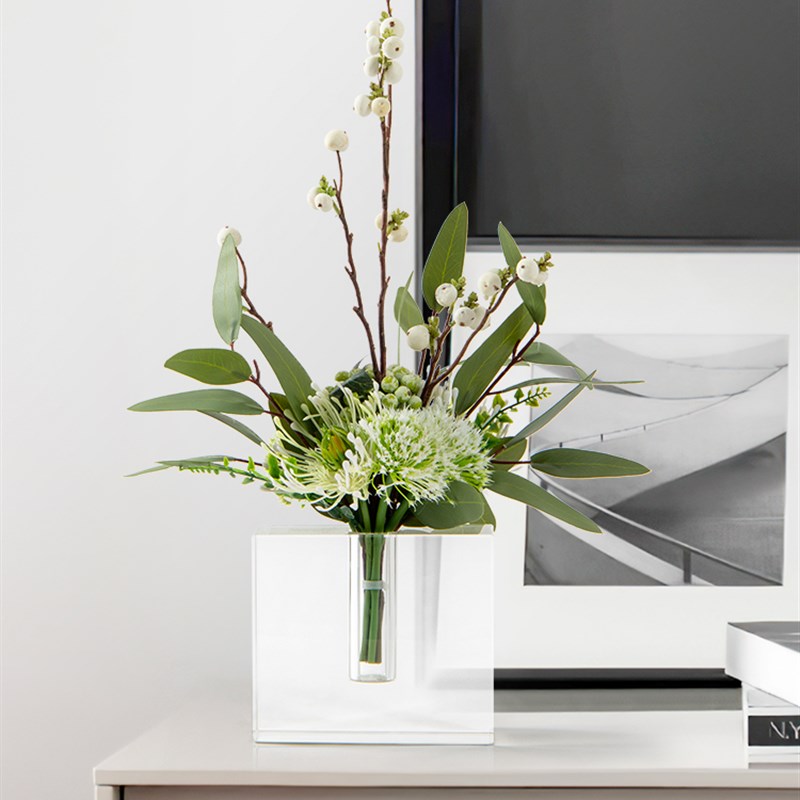 高级感轻奢透明水晶花艺现代花瓶客厅样板房间售楼处软装饰品摆件
