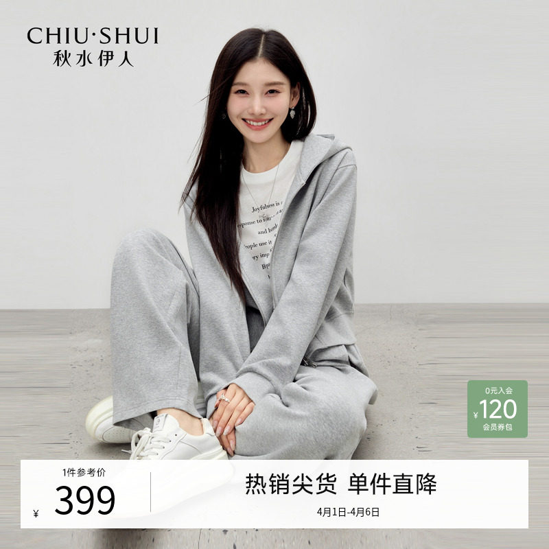 秋水伊人休闲通勤连帽套装2026年春季新款慵懒风卫衣休闲裤两件套