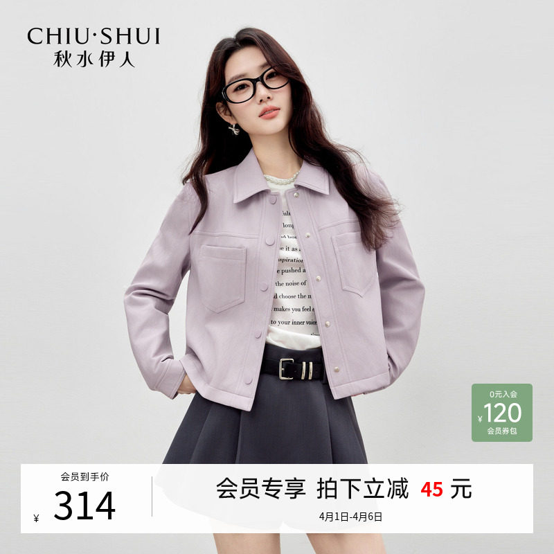秋水伊人翻领短款外套女2026春季新款女装小个子流行好看夹克上衣