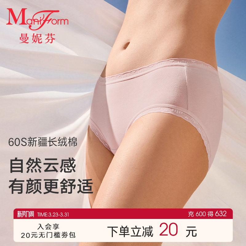 曼妮芬蕾丝女内裤柔软80S莫代尔中腰三角裤舒适纯棉抗菌内裆底裤