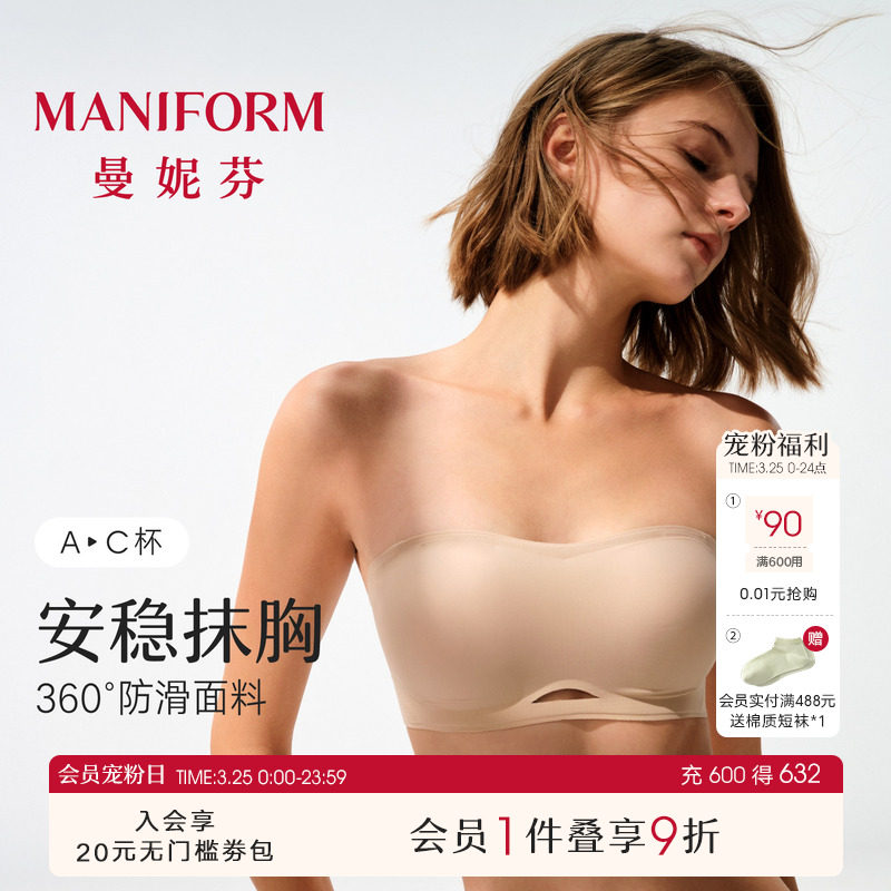 蹦跳不会掉抹胸|曼妮芬无肩带防滑内衣女可拆卸文胸无痕轻薄裹胸
