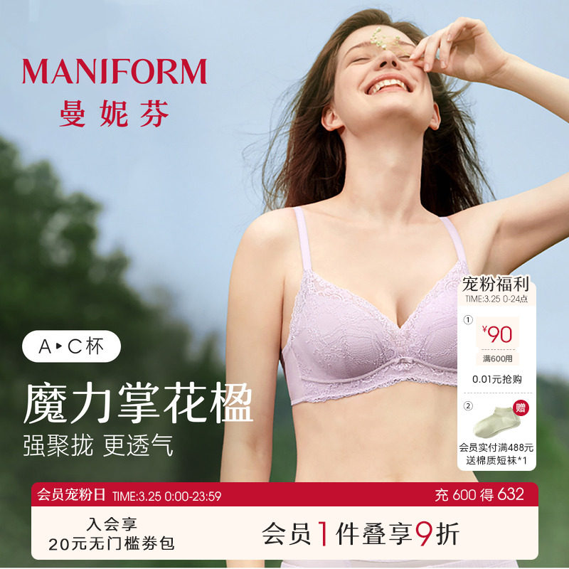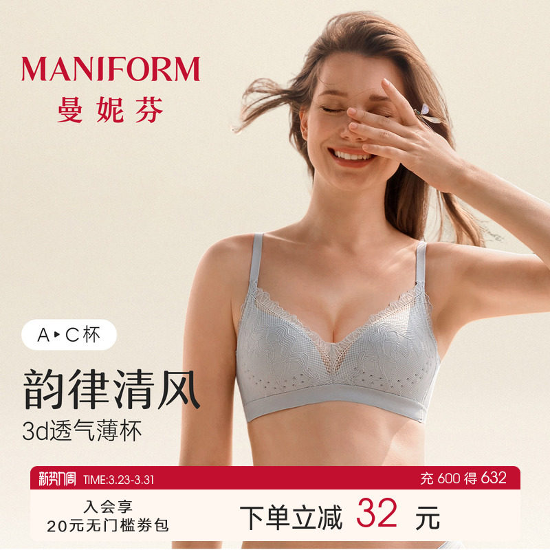 曼妮芬蜻蜓Bra芒果杯无钢圈文胸舒适无痕内衣女聚拢胸罩奶油蕾丝