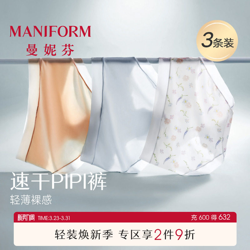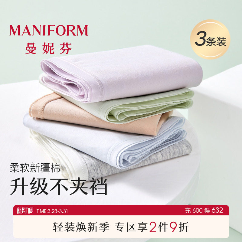 3条装曼妮芬速干底裤女士舒适薄款内裤低腰纯棉抗菌底裆三角短裤