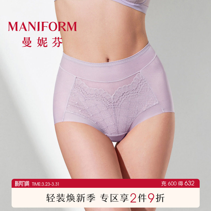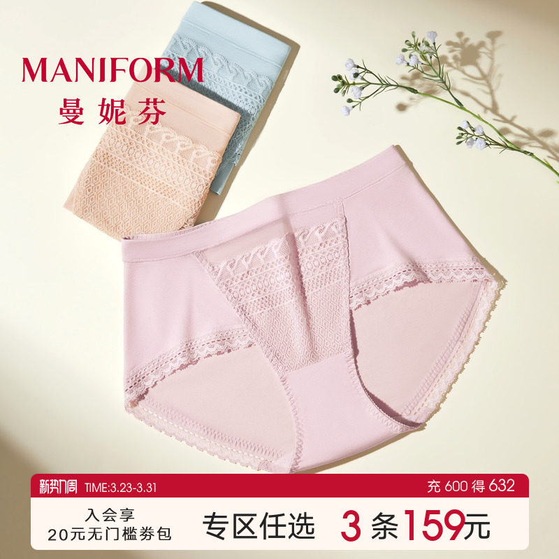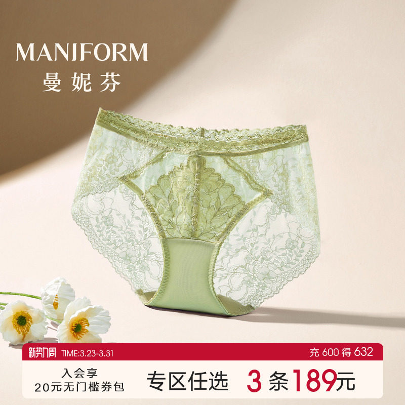 曼妮芬性感蕾丝女士内裤高颜值无痕中腰低角裤舒适高弹纯棉裆短裤