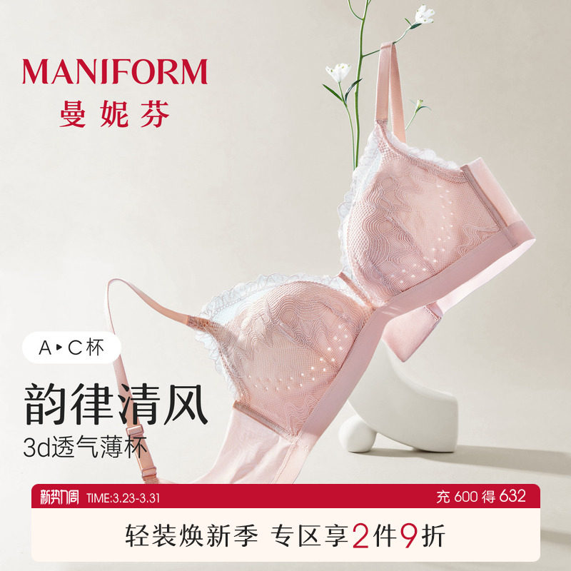 曼妮芬蜻蜓Bra舒适无钢圈女性感蕾丝文胸透气洞洞杯内衣20812391