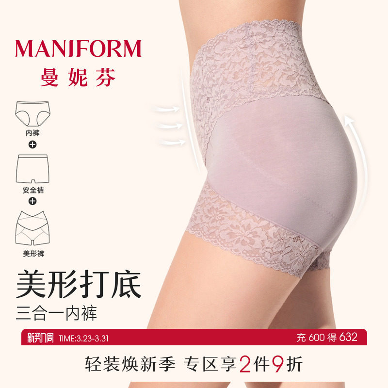 曼妮芬舒适高腰大码收腹内裤红色低角裤女士性感蕾丝全棉底裆底裤