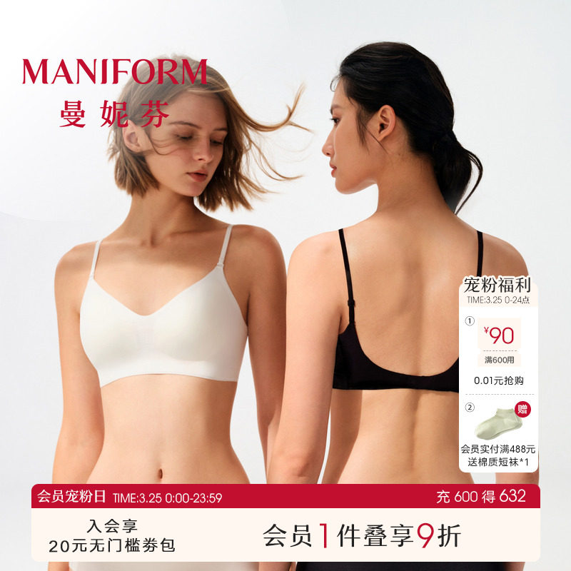 曼妮芬芒果杯智慧无尺码无痕隐形粉底液内衣女无钢圈背心文胸胸罩