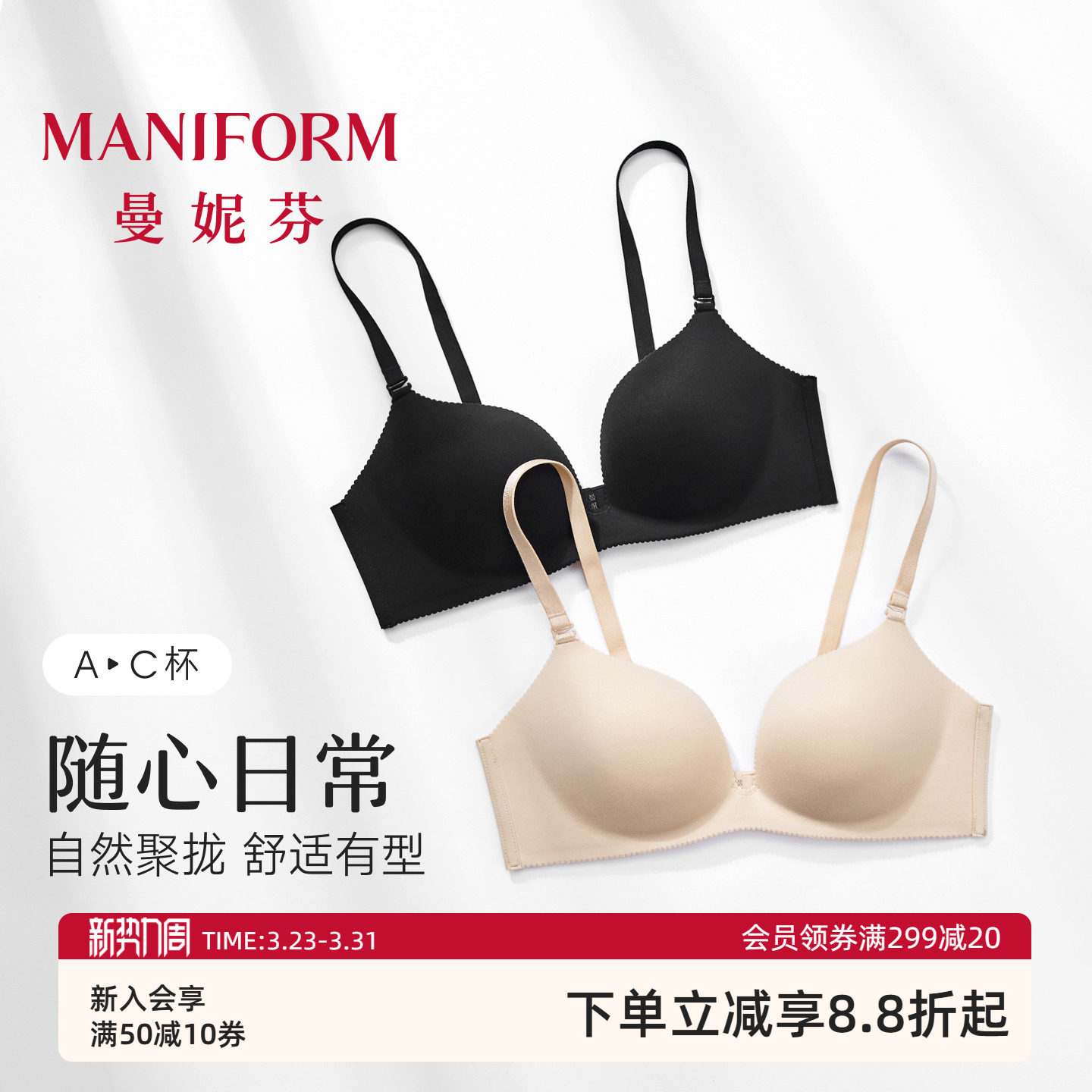 曼妮芬舒适无钢圈芒果杯文胸女士无痕贴合背心软支撑内衣女生胸罩
