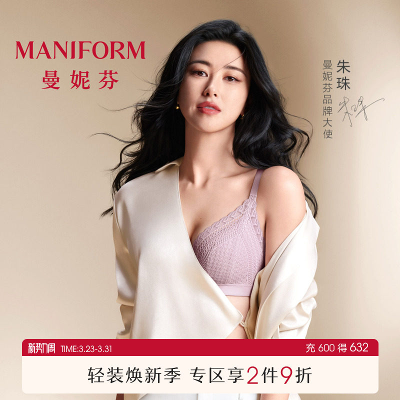 朱珠同款|曼妮芬单层围大胸显小文胸性感法式蕾丝内衣女薄款胸罩