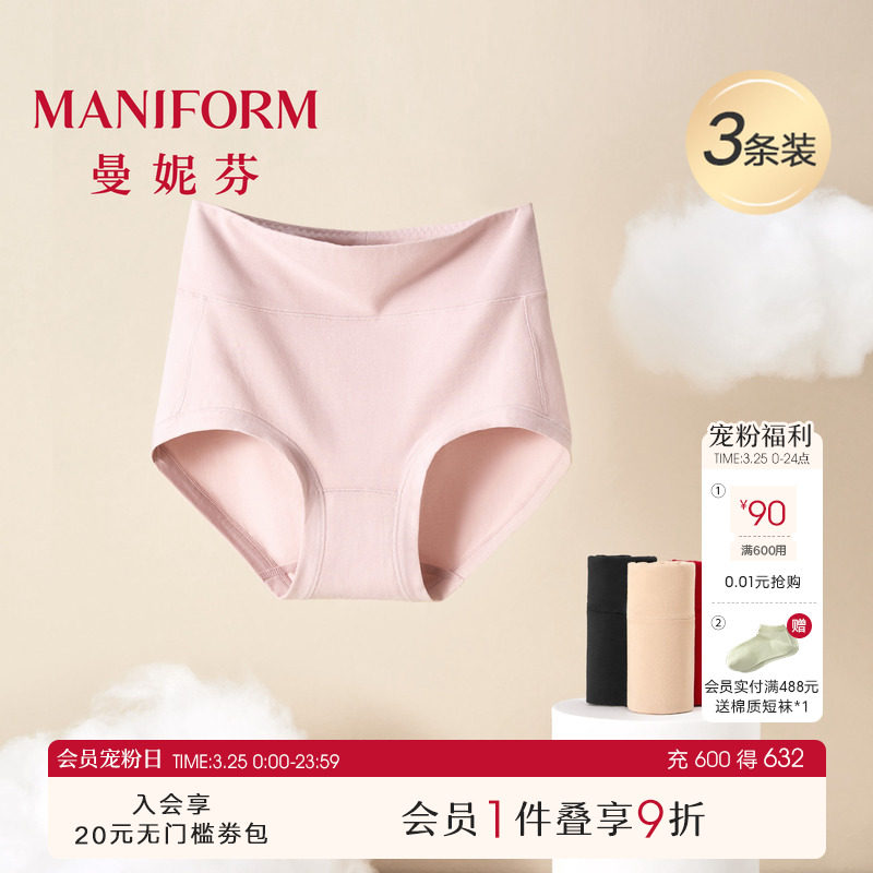 【3条装】曼妮芬棉质生活中腰高腰100%棉纯棉全棉抗菌底裆内裤女