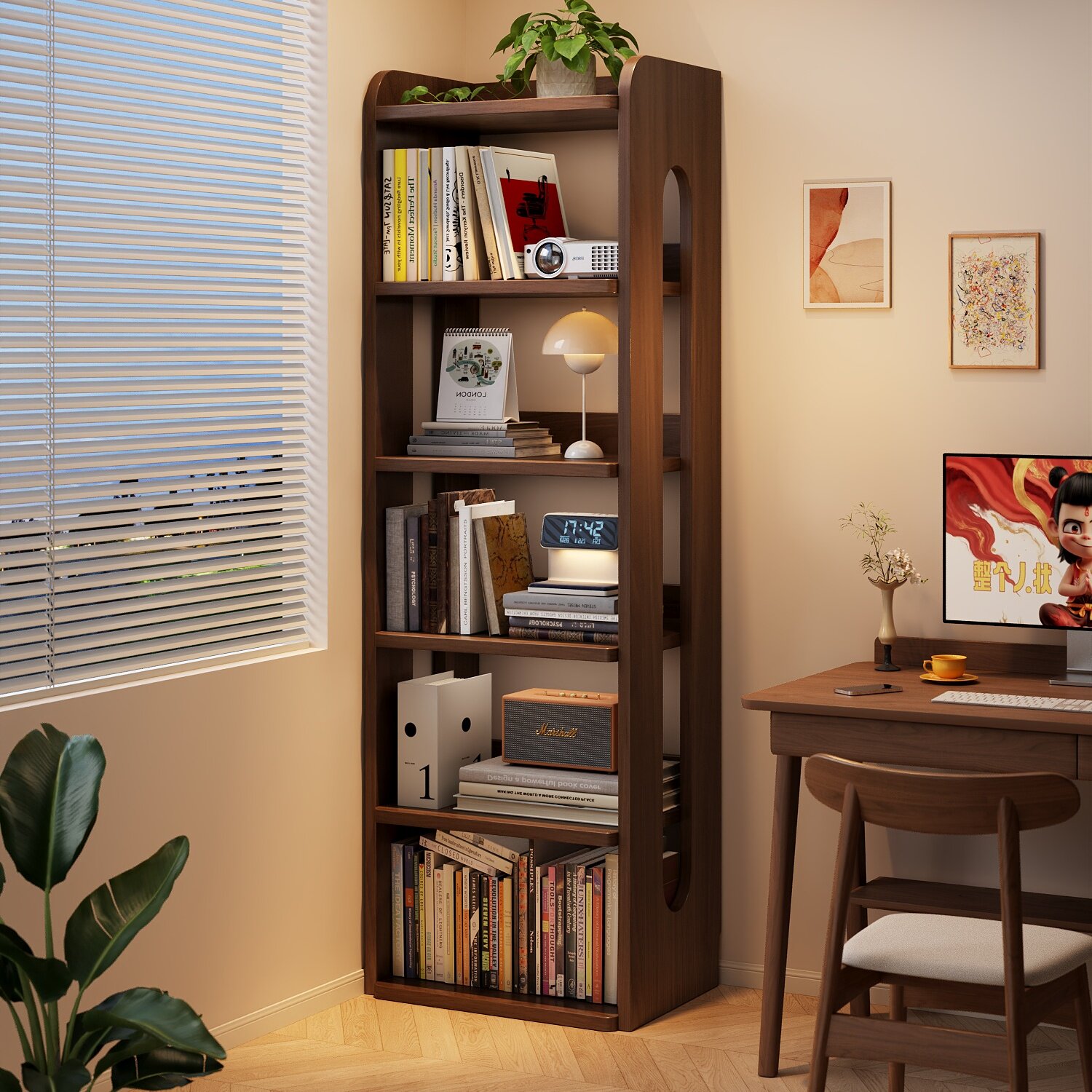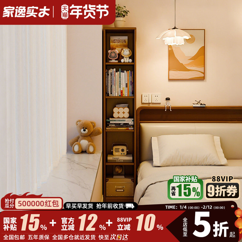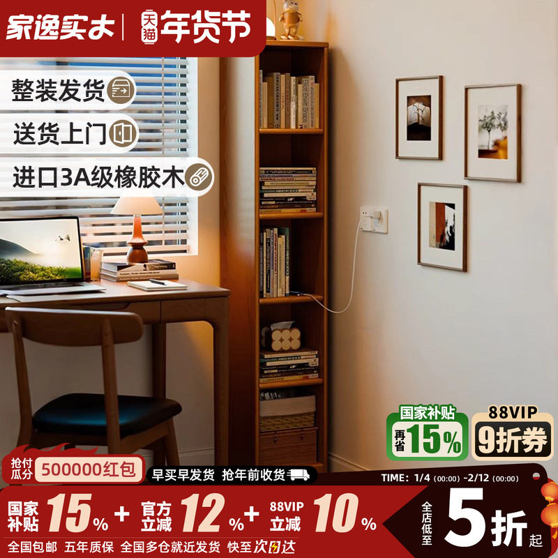 三梦实木书柜展示落地实木一体柜窄缝靠墙转角书架客厅家用置物架