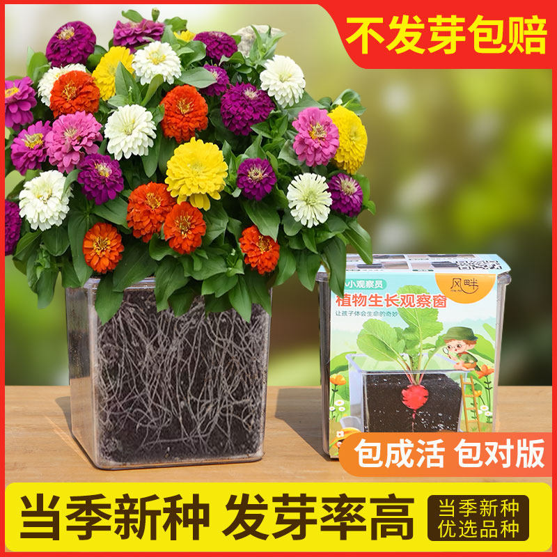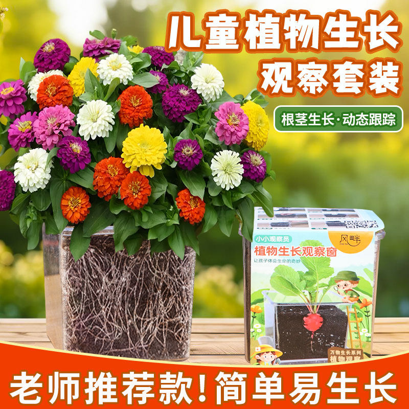 百日草种子儿童种植观察小盆栽学生实验四季开花太阳花向日葵种籽