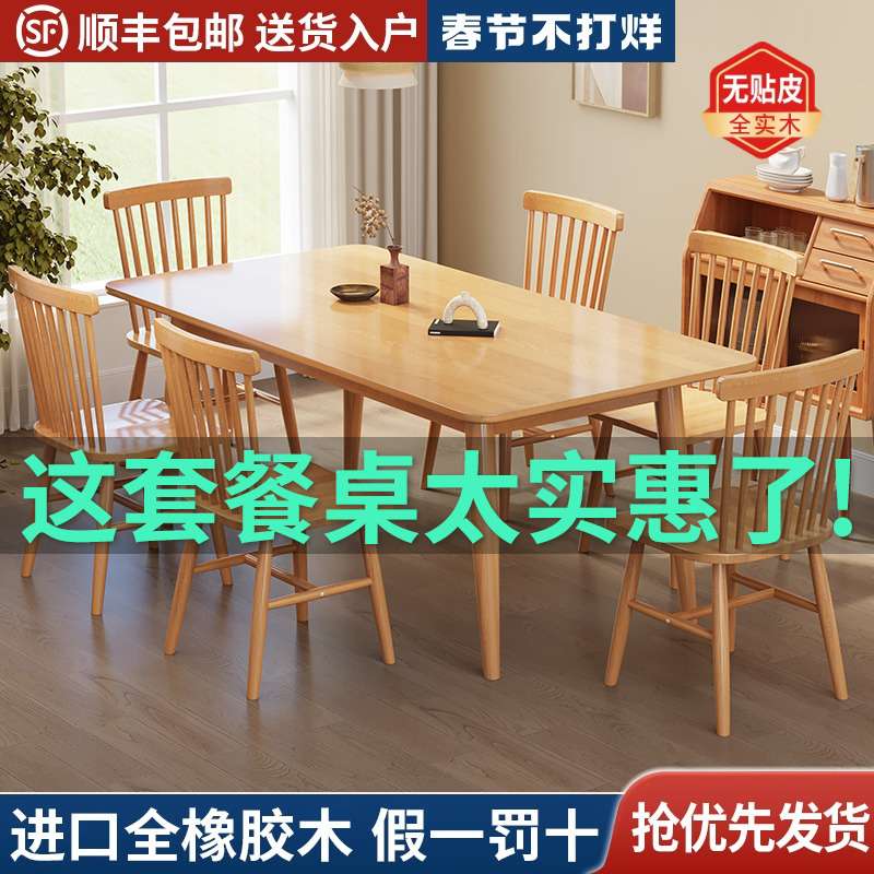 全实木餐桌现代简约橡木餐桌椅组合北欧原木小户型长方形吃饭桌子