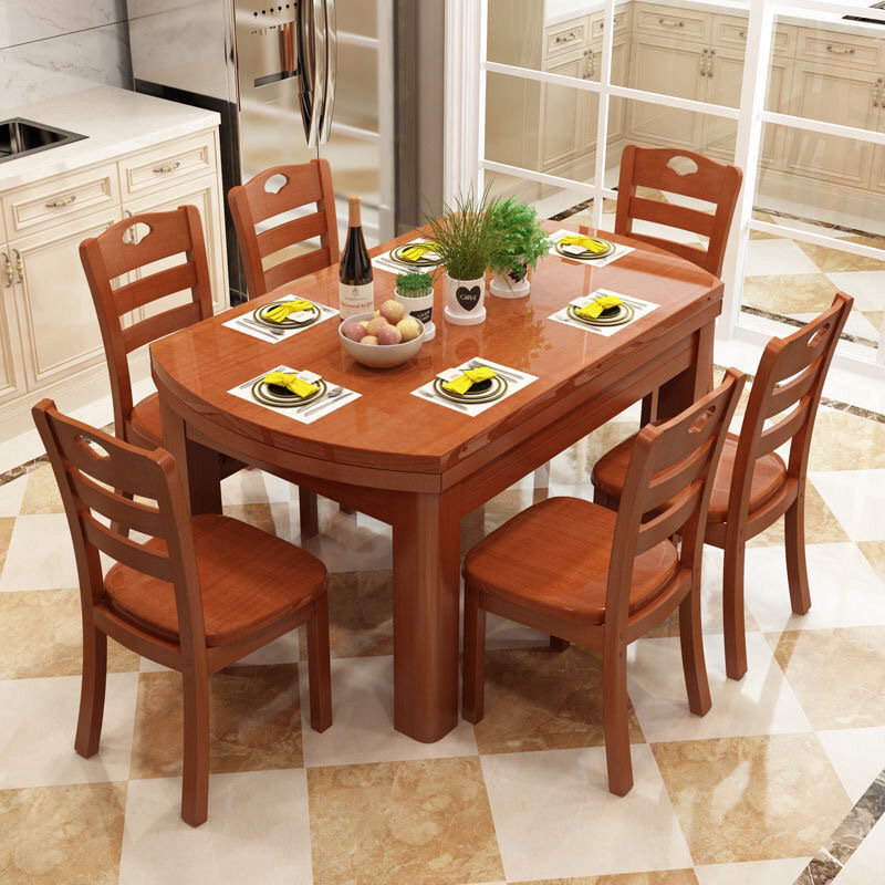 100%全实木橡木餐桌椅组合方圆两用伸缩折叠4-12人小户型吃饭桌子