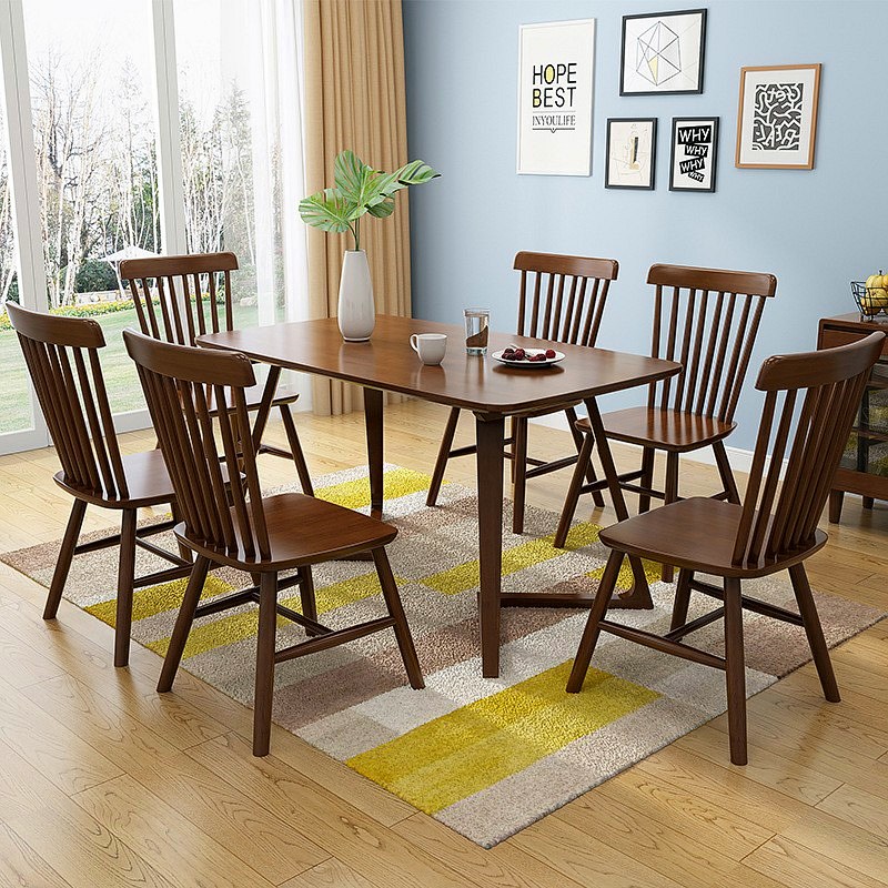 原木小户型简约橡木餐桌椅组合北欧实木餐桌椅组合小户型长方形简