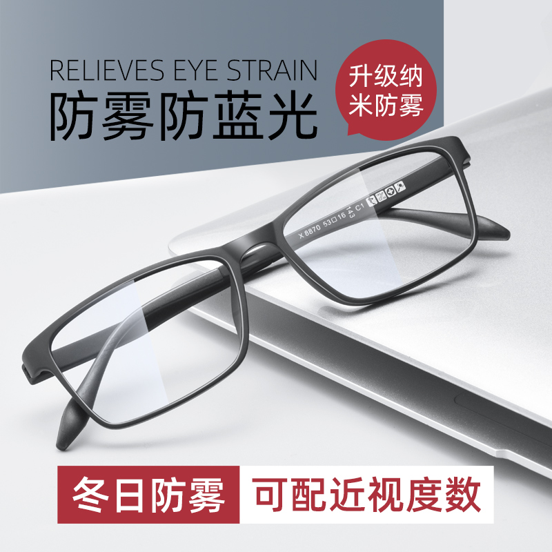 防雾近视眼镜男款可配度数防蓝光辐射疲劳冬天不起雾镜片超轻近视