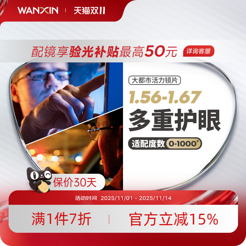 万新镜片防蓝光辐射超薄近视1.67配镜高度数镜片1.74官方旗舰店