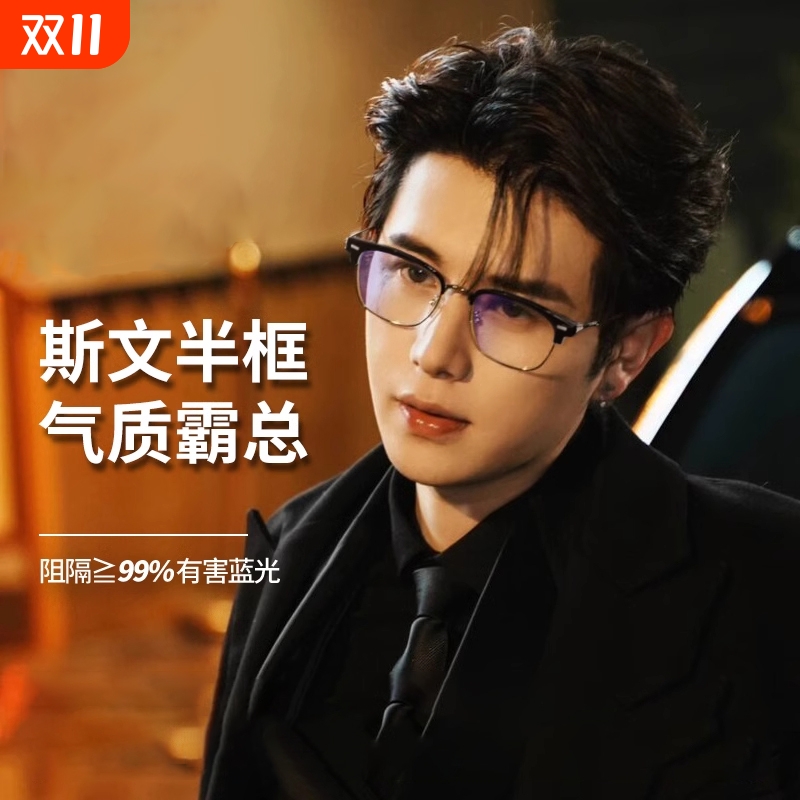 童锦程同款半框眼镜男痞帅专业防蓝光抗辐射近视可配度数平光镜片