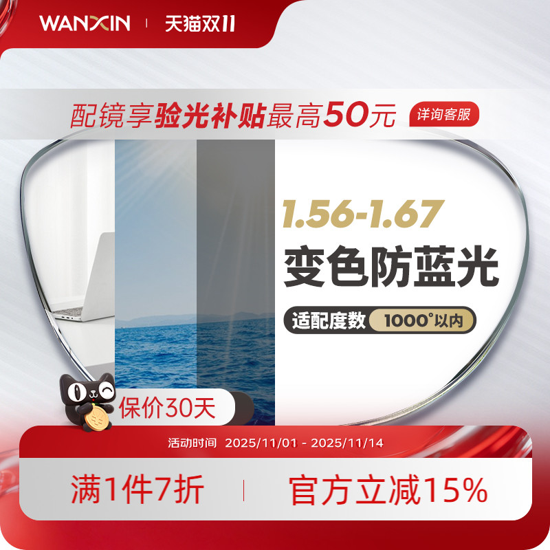 万新防蓝光变色近视镜片自动感光变色抗紫外线辐射可配无度数眼镜