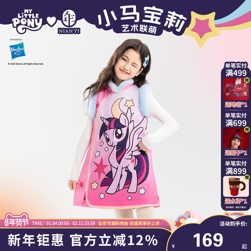 小马宝莉联名年衣童装旗袍秋冬新款女童旗袍裙卡通公主连衣裙礼服