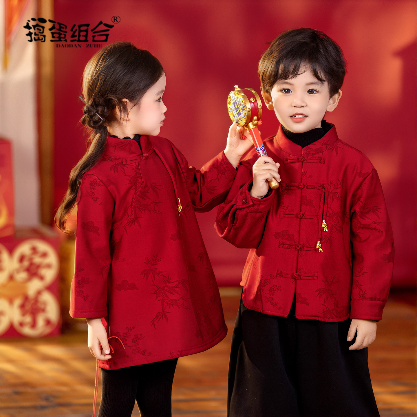 儿童中国风唐装红色拜年服男童汉服女童旗袍裙新年喜庆宝宝过年服