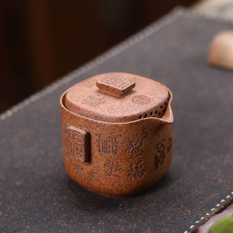 【成义紫砂】宜兴原矿龙骨金砂手抓壶紫砂壶全手工制作容量170ml