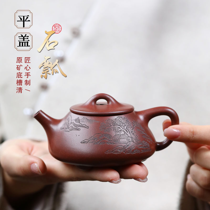 原矿底槽清全手紫砂壶平盖石瓢小容量泡茶壶家用高档精品茶具套装