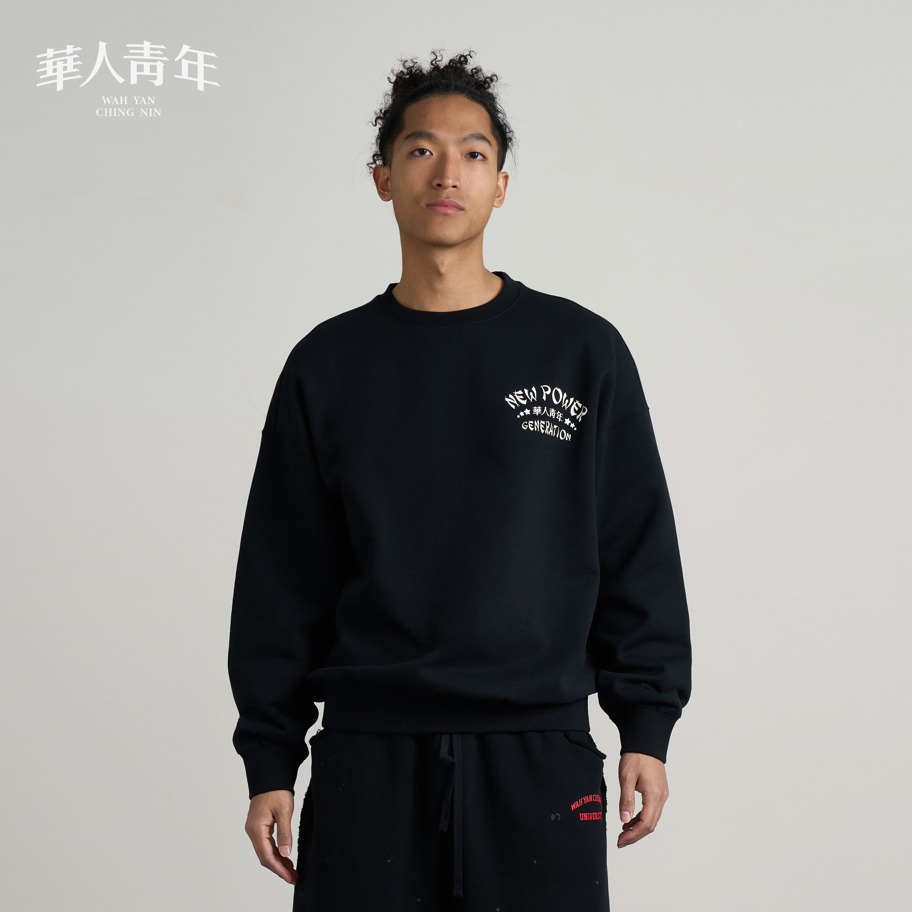 华人青年星星logo圆领卫衣情侣简约长袖打底衫宽松百搭上衣外套