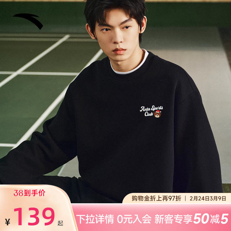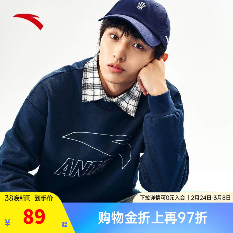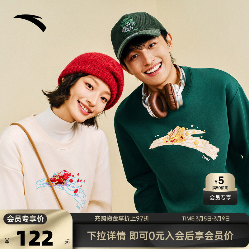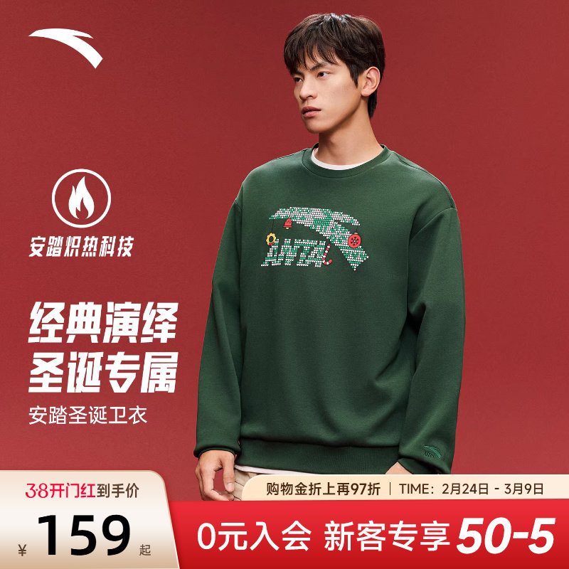 安踏卫衣情侣装春夏新款圣诞限定男女同款套头衫圆领休闲运动上衣