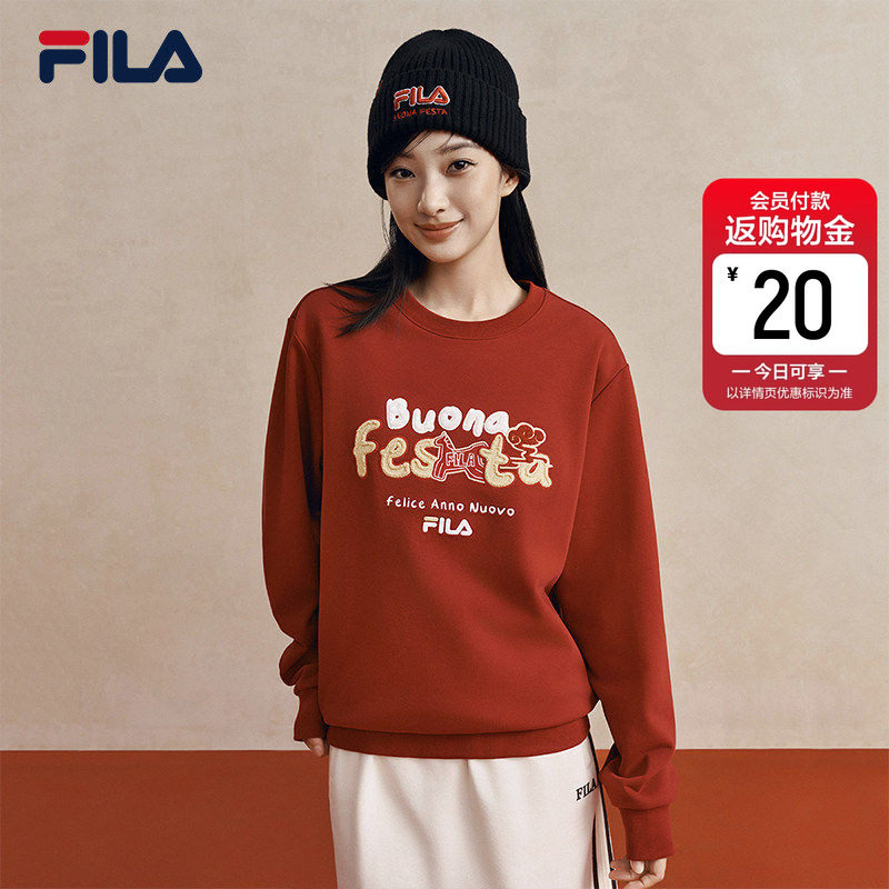FILA马上起飞抓马卫衣斐乐情侣套头卫衣26春新年男女同款红色上衣