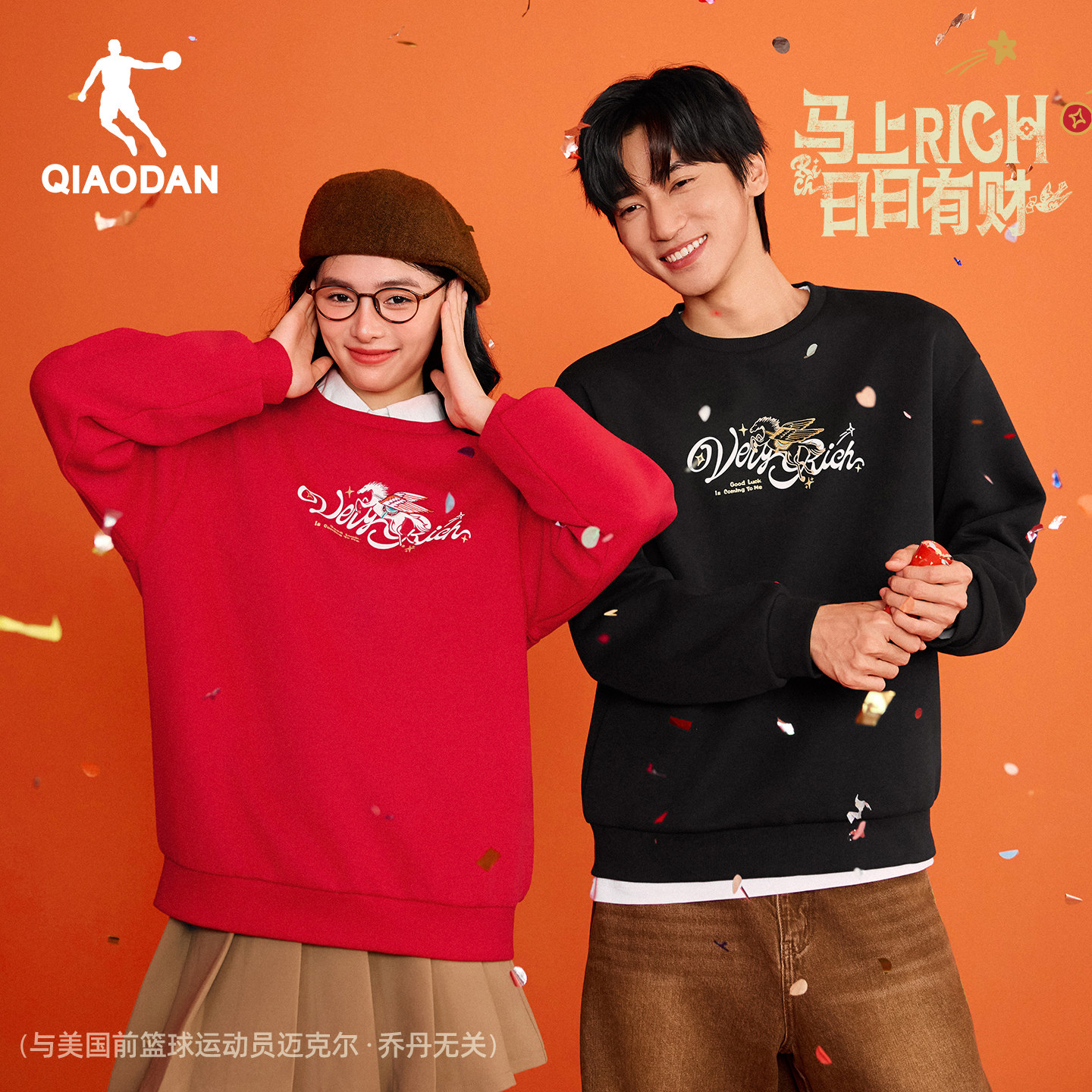 乔丹红色卫衣情侣款2026年春季新款马上有钱新年休闲服本命年上衣