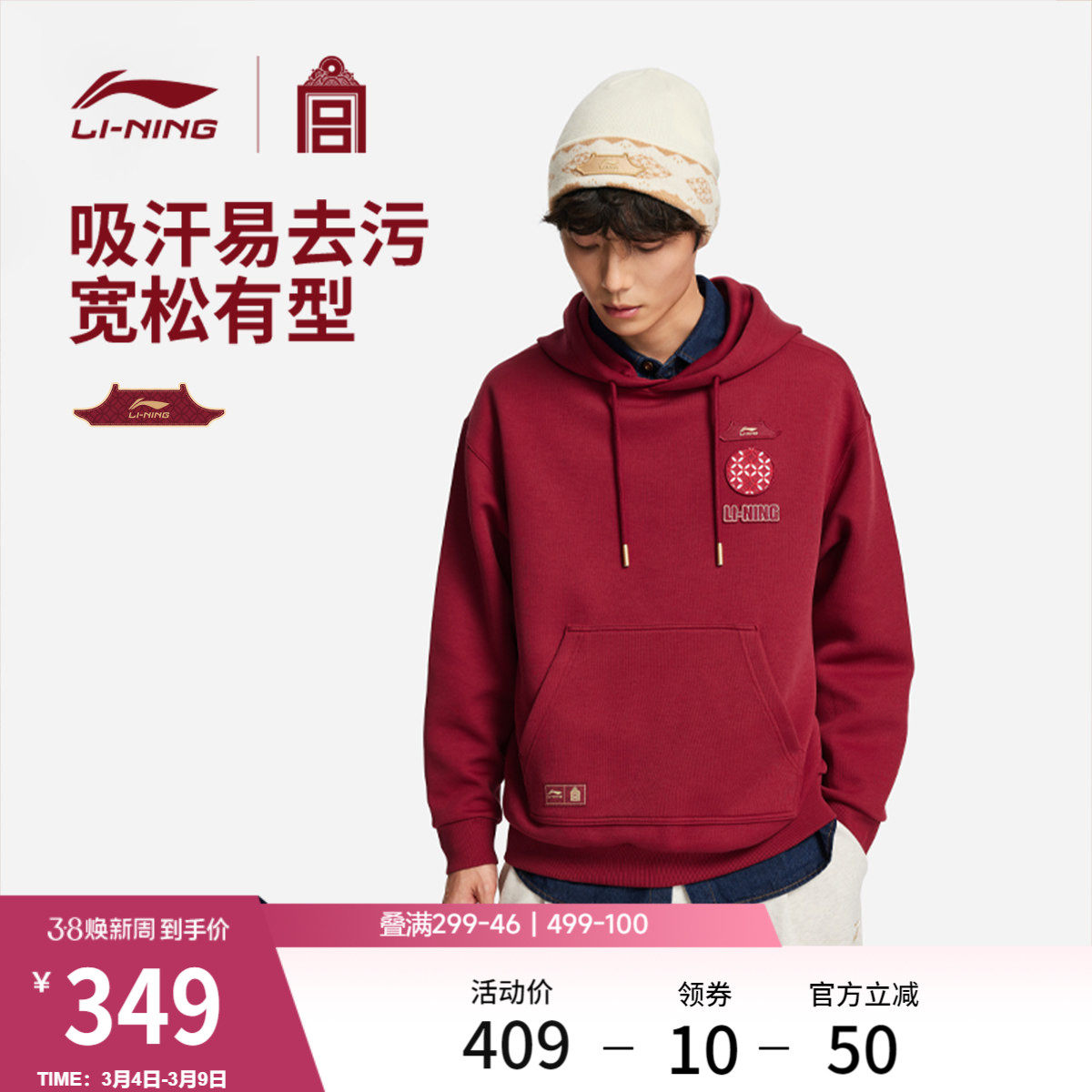 李宁中国文化系列故宫联名卫衣女春季红色上衣马年情侣装运动服男