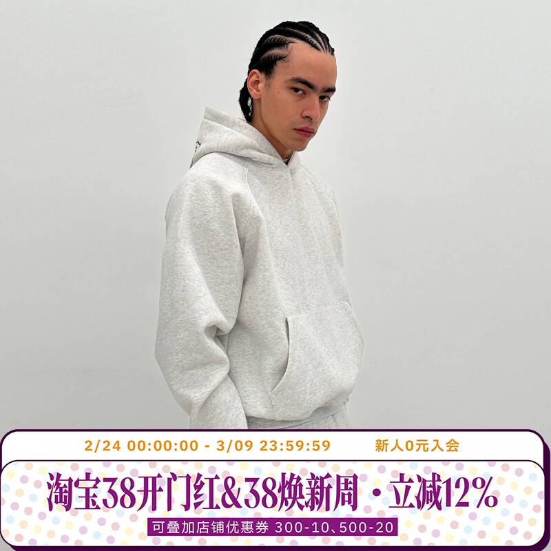 FORNINES刺绣重磅灰色卫衣男款连帽衫潮牌情侣春秋美式外套女上衣