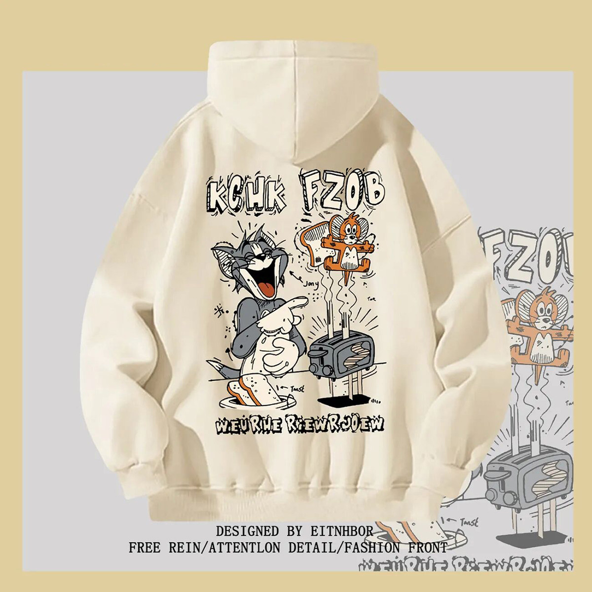 银狐绒美式复古猫和老鼠卫衣情侣装ins秋冬宽松潮流连帽外套男女