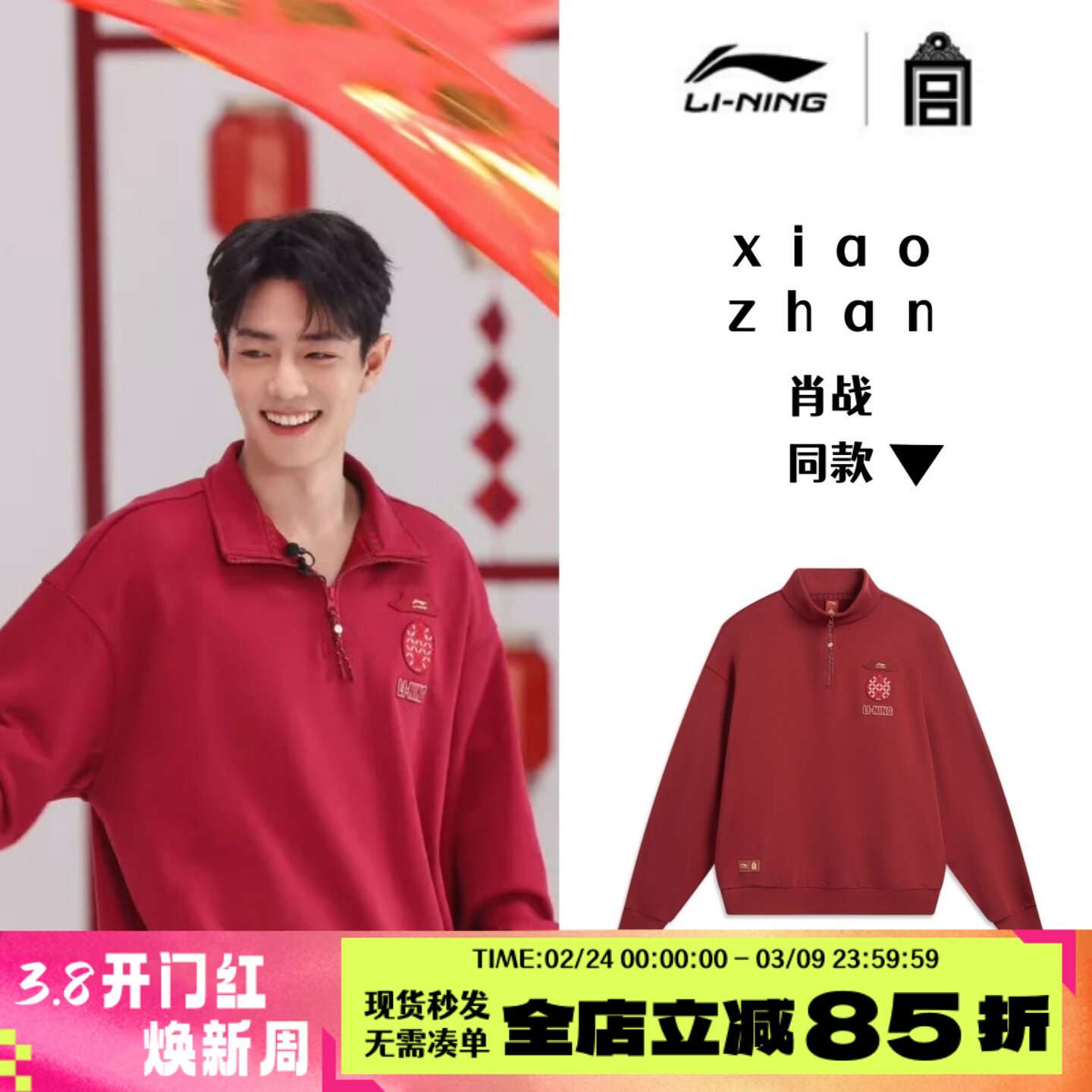 李宁套头卫衣情侣2026年新款故宫联名立领半拉链新年上衣AWDW463