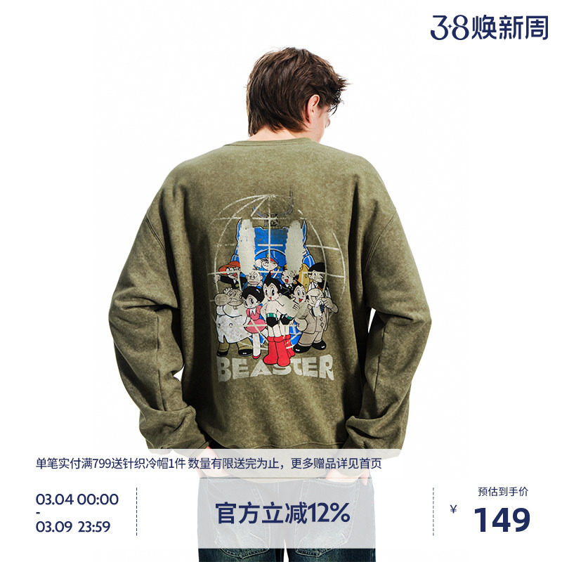 【铁臂阿童木联名】BEASTER做旧水洗抓绒面料卫衣情侣上衣
