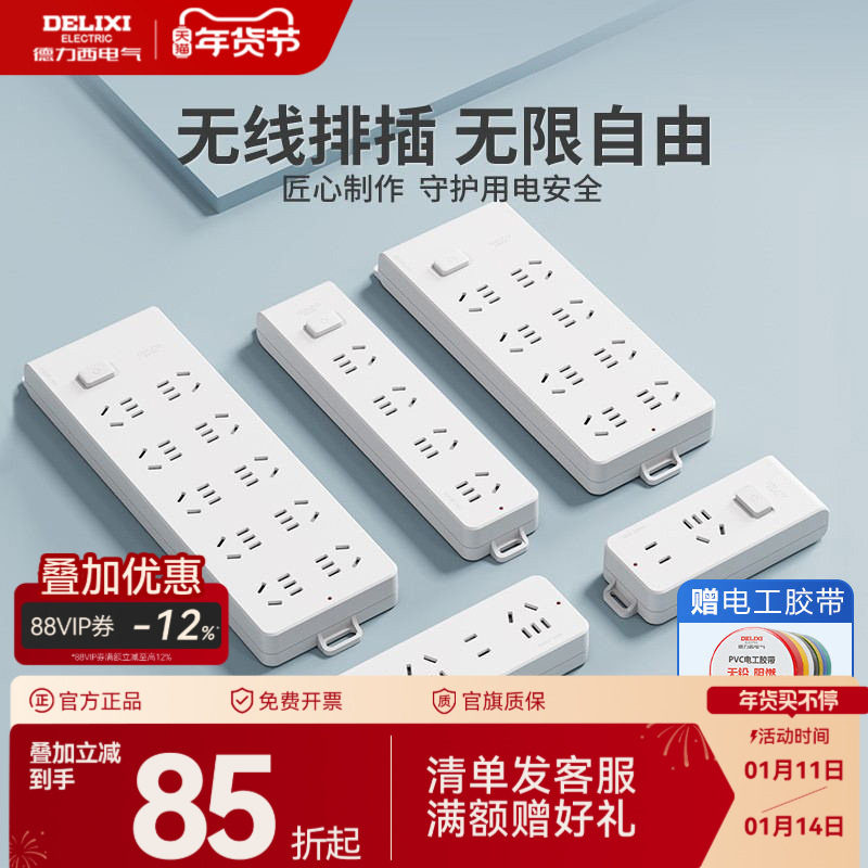 德力西官方插座插排插线板总开关接线板拖线板多功能排插插板宿舍