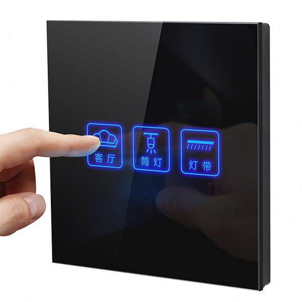 微控触碰式开关面板智能触控开关三开单控感应开关玻璃面板墙壁开