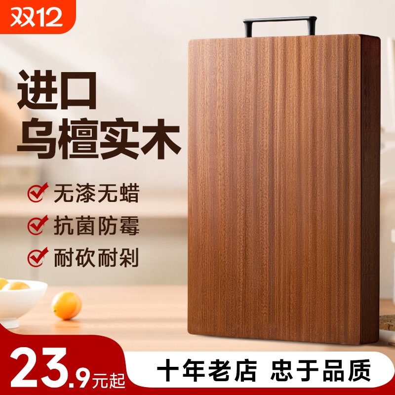 乌檀木菜板抗菌防霉家用食品级实木砧板厨房专用双面切菜案板粘板