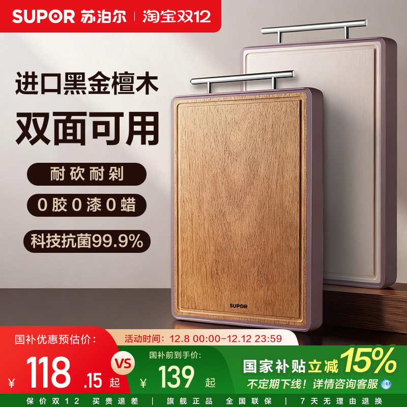 苏泊尔抗菌防霉家用砧板黑金檀木切菜板实木PP双面食品级案板面板