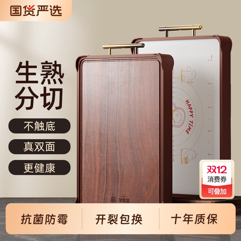 好管家乌檀木菜板实木案板抗菌防霉家用食品级砧板双面切菜板整木