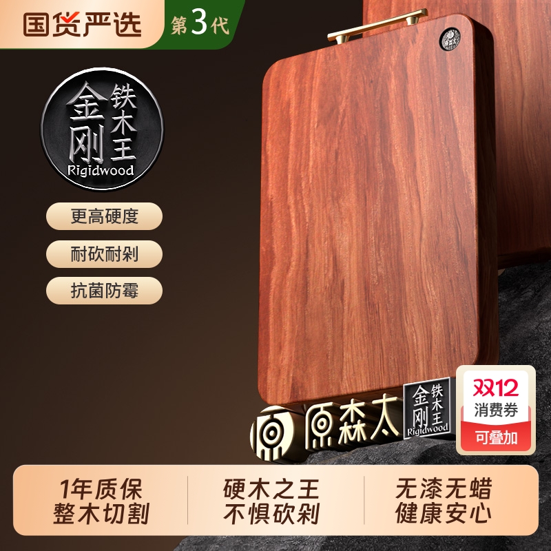 原森太整木菜板切菜板实木食品级铁木王砧板抗菌防霉家用案板整块