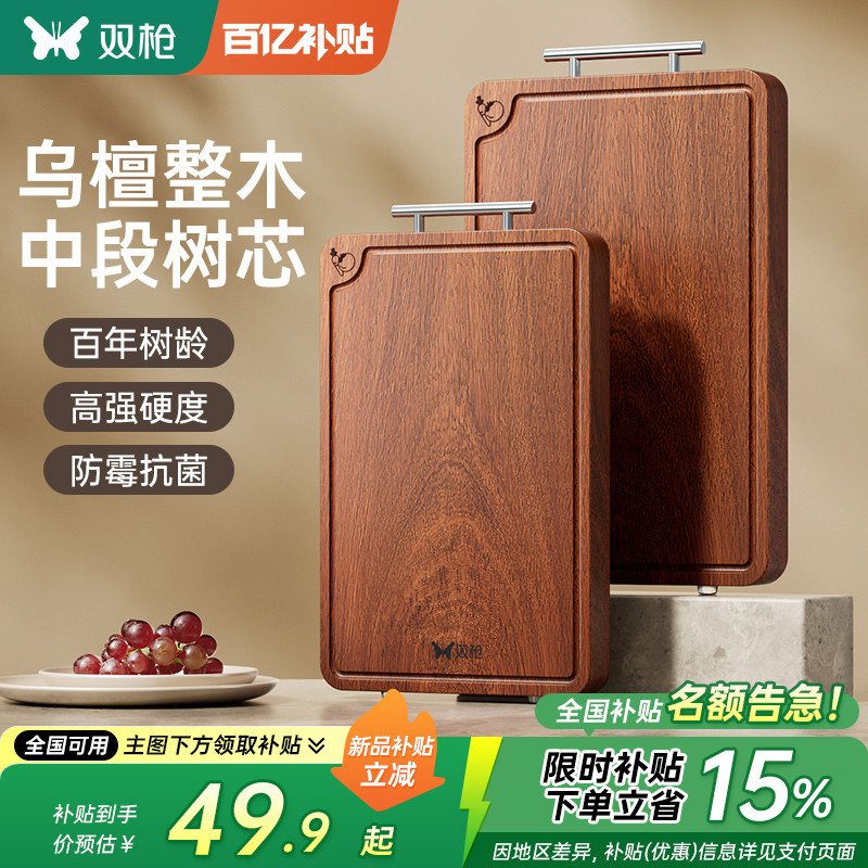 双枪整木乌檀木菜板防霉抗菌家用切菜板实木砧板案板厨房专用砧板