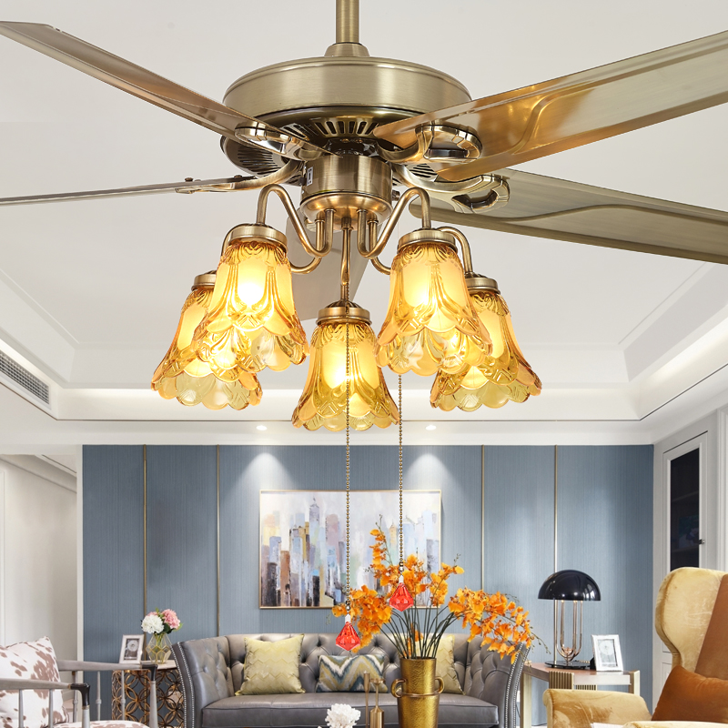 木叶吊扇灯 餐厅风扇灯 客厅带灯铁叶电风扇灯的家用欧式风扇吊灯